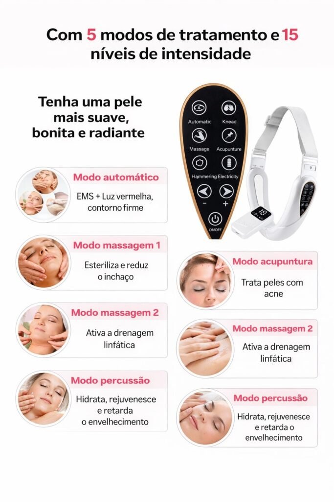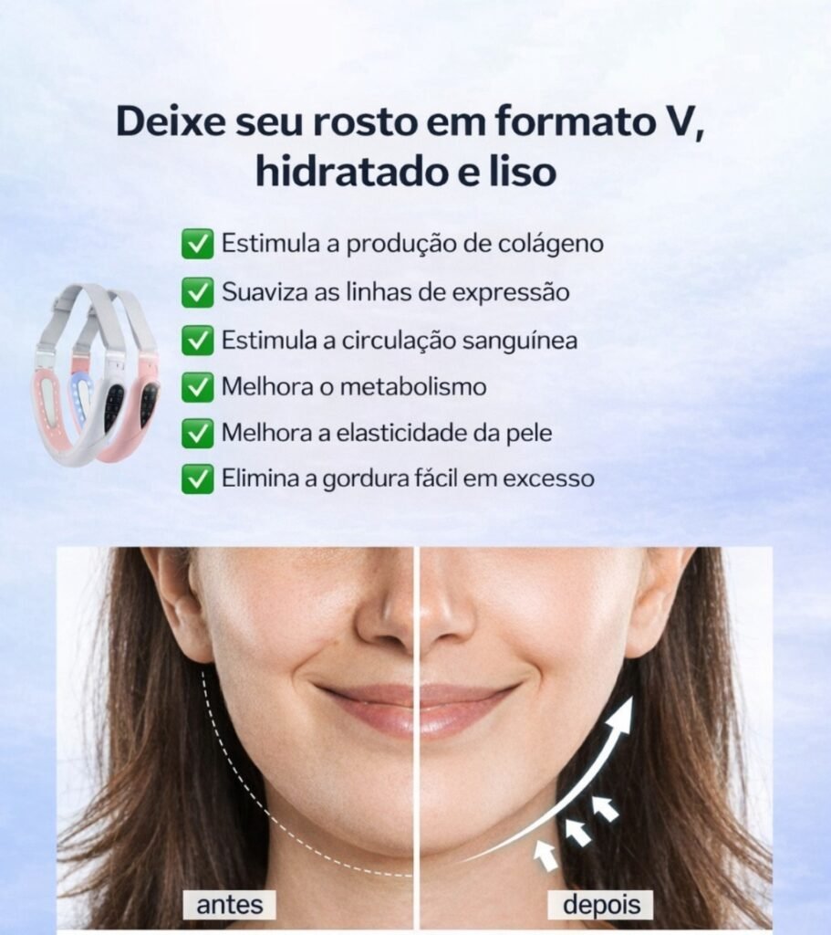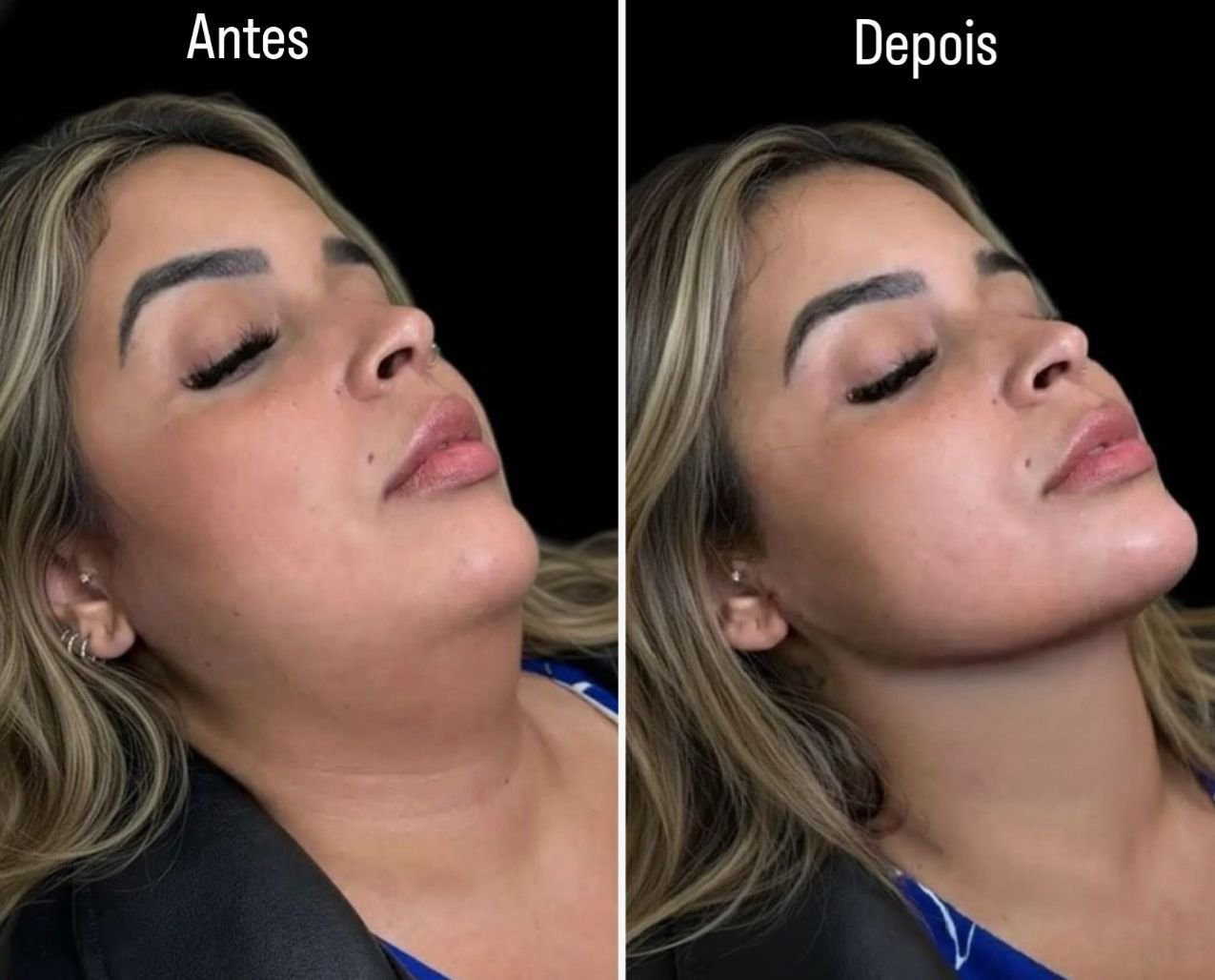A maioria dos usuários relata melhora visível no contorno facial em 2 a 4 semanas.